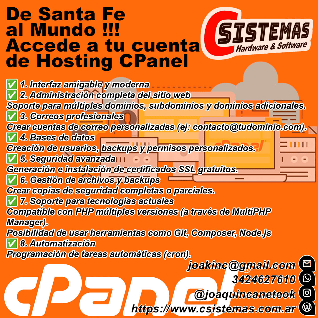 ✅ Soporte para tecnologías actuales Compatible con PHP múltiples versiones (a través de MultiPHP Manager). Posibilidad de usar herramientas como Git, Composer, Node.js